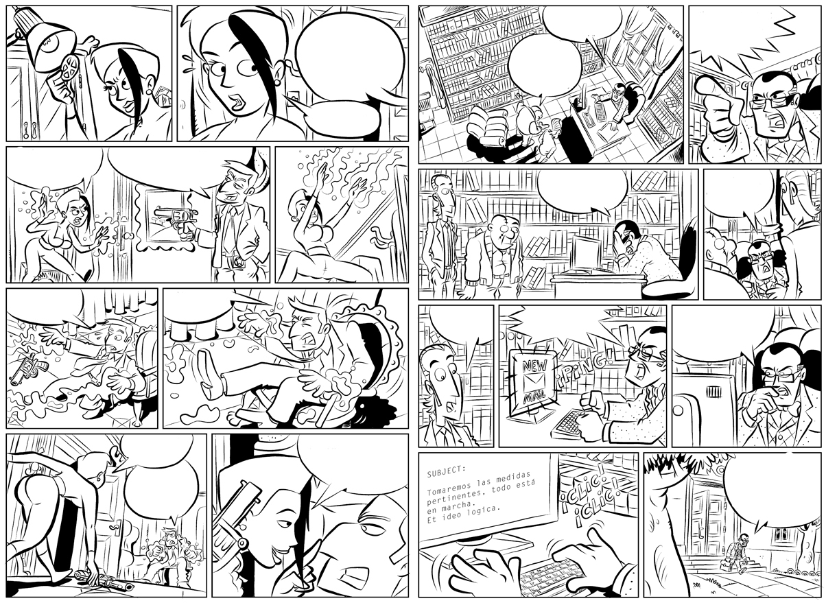 Alguna de las páginas que hice para un proyecto de cómic de Jos Tikismikis que está en stand by. ¡Algún día lo retomaremos!