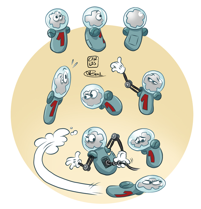 Estudios de Droide UNO, el inseparable compañero de Cosmo Jim. Una vez más con el color de Sonia Moruno