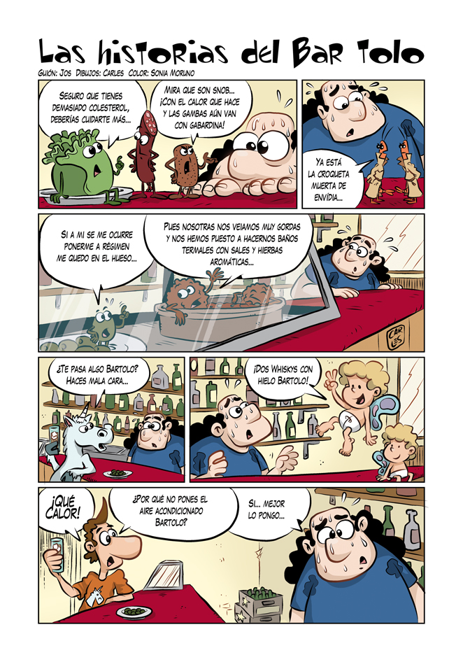 Hete aquí la página publicada en el especial verano de la revista Amaniaco, con guión de Jos y color de Sonia Moruno.