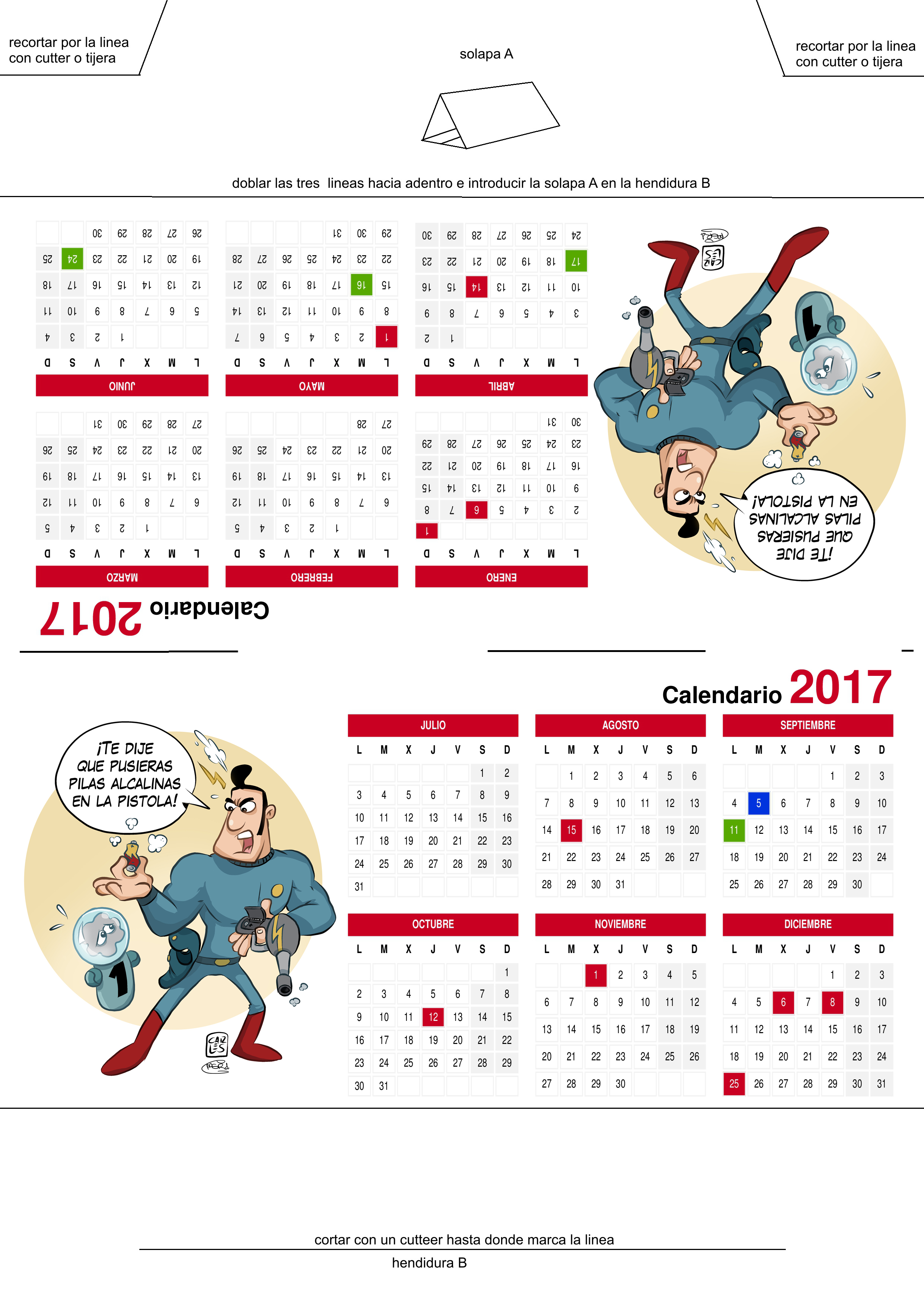 Para que veáis que Cosmo Jim sigue vivo os regala este práctico calendario de escritorio para que sepáis en que día vivís. Solo tenéis que abrir la imagen, guardarla en vuestro ordenador, imprimirla en papel gordito o cartulina y finalmente doblar y montar siguiendo las instrucciones.