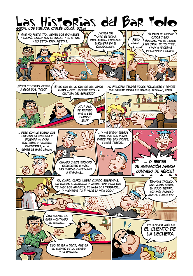 Qué bonitos y cuánto nos han enseñado a lo largo de los años los cuentos clásicos. Verdaderos pozos de sabiduría y experiencia… aunque a veces no los usamos correctamente. Así lo explicamos en la última de Las Historias del Bar Tolo, con guión del gran Jos, dibujada por mi y coloreada por la insuperable Sonia Moruno.