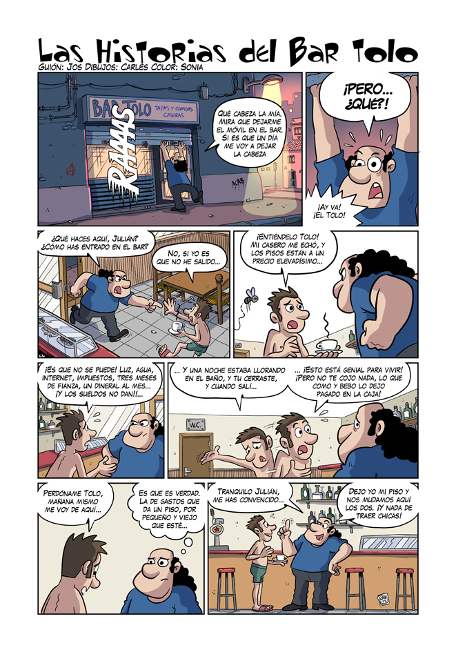 ¡Qué difícil es encontrar piso!… pero a veces se encuentra la solución donde menos lo esperas. En la nueva aventura de Las Historias del Bar Tolo, en la revista Amaníaco, lo explicamos. Con guion de Jos, mis dibujos y el color de Sonia Moruno.